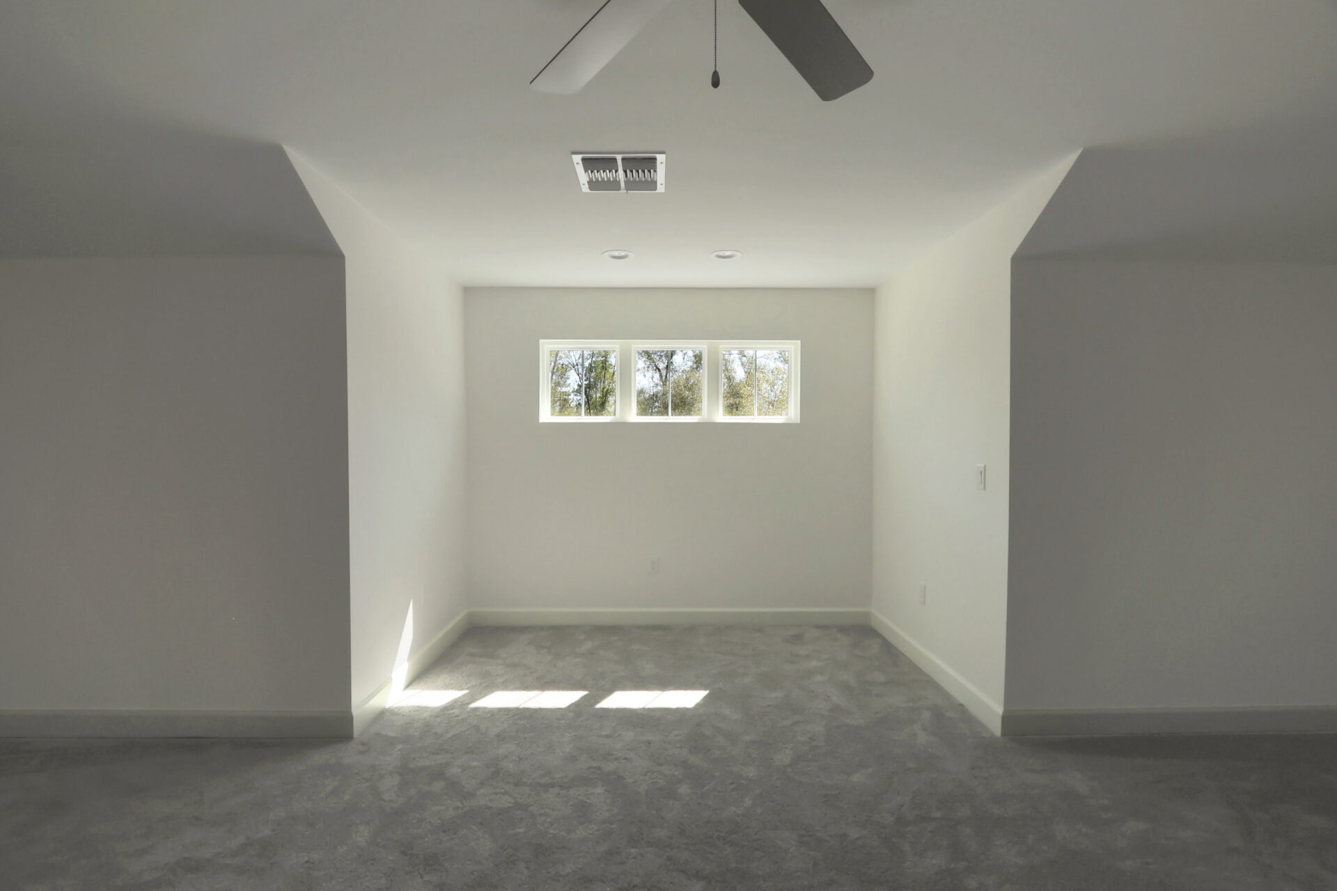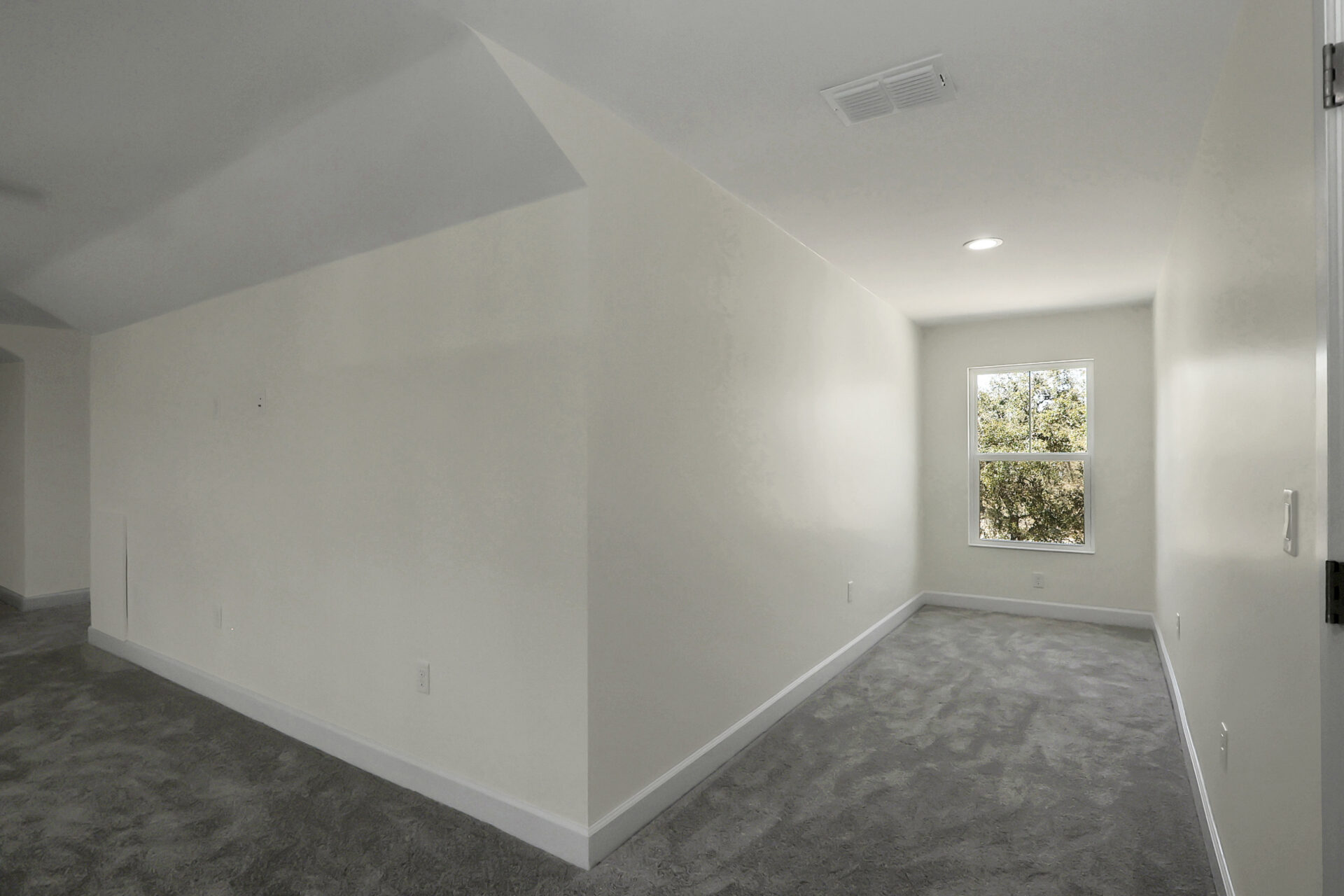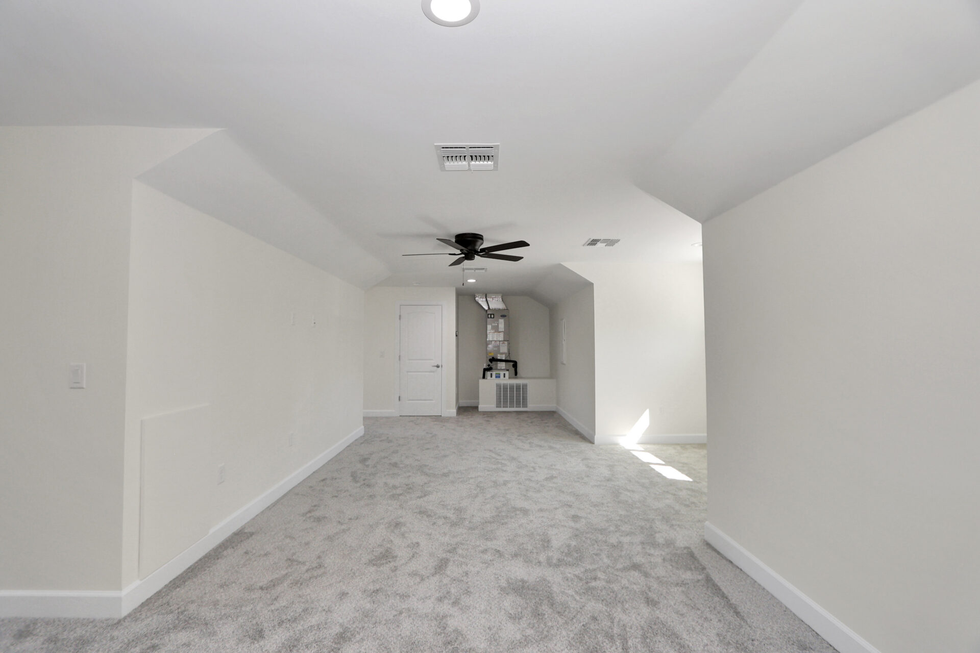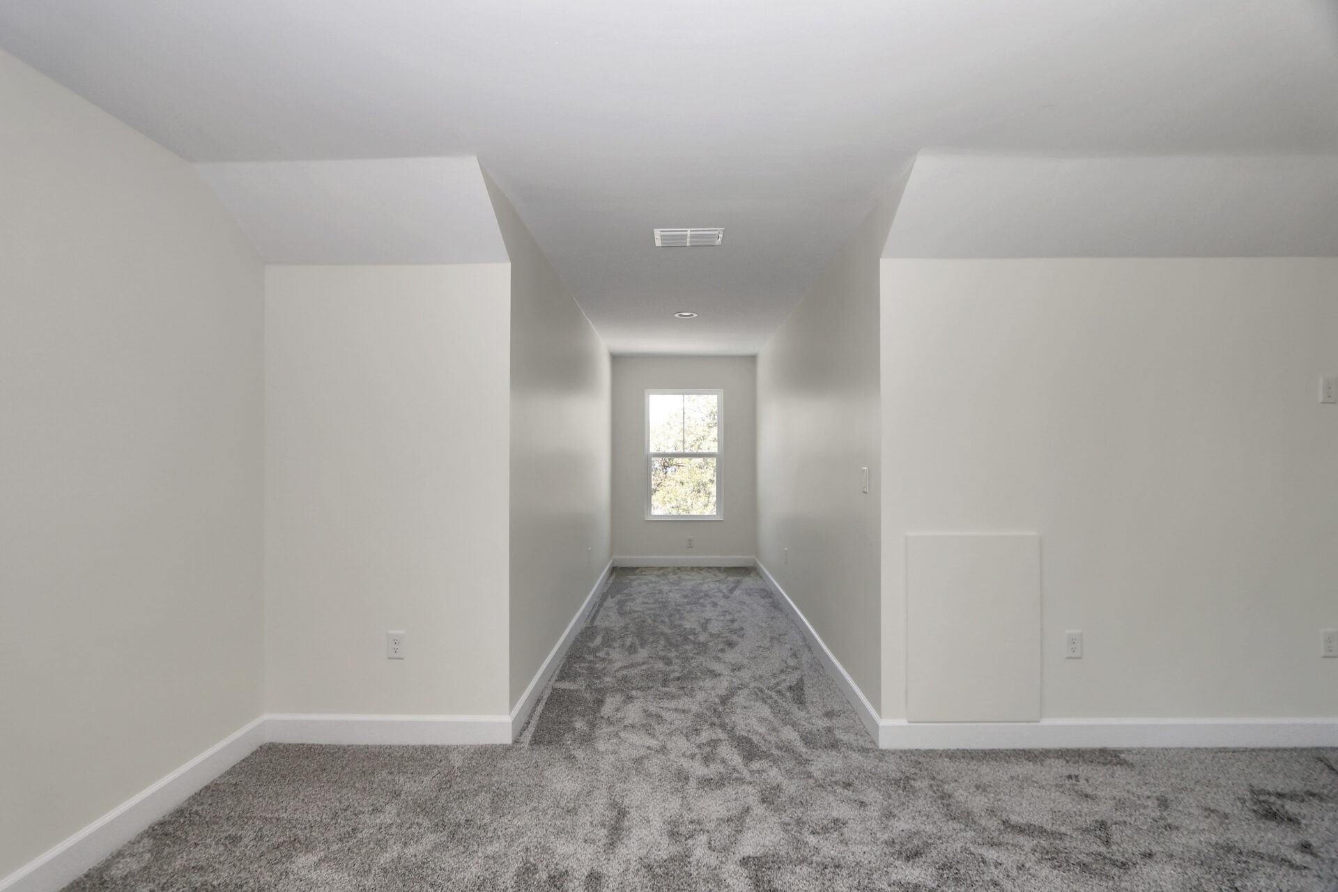 The craftsmanship continues on the second floor with a completely finished attic. This expansive bonus area is finished with plush grey carpeting, making it an ideal space for a home theater, gym, or office. The layout features two long hallway-style galleries with shed row windows at each end to ensure the space is filled with natural light while maintaining a classic architectural profile.