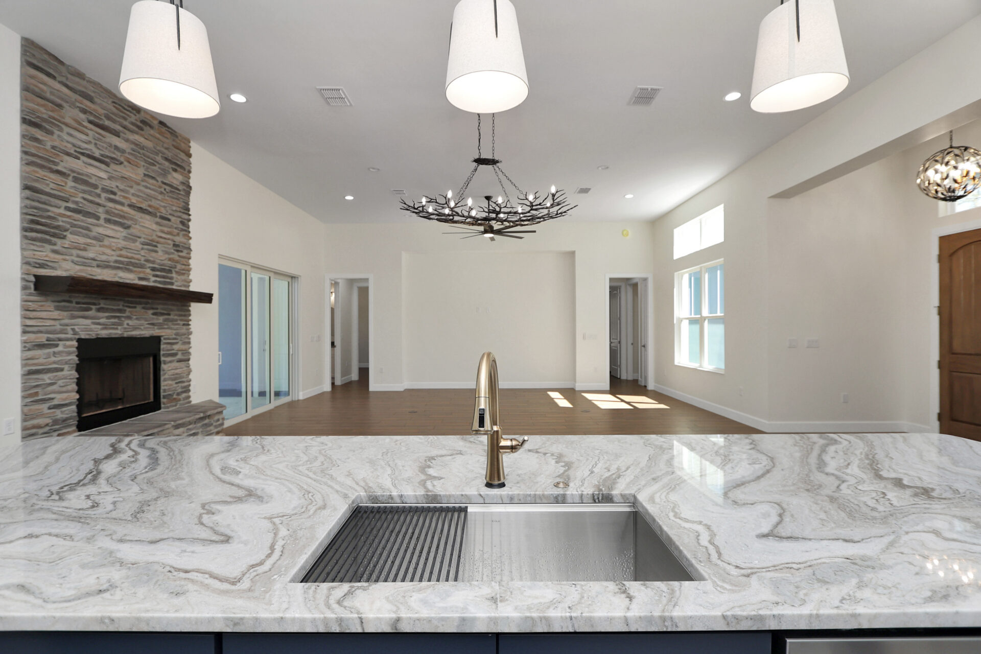 Great Room & The Custom Multicolor Stone Fireplace