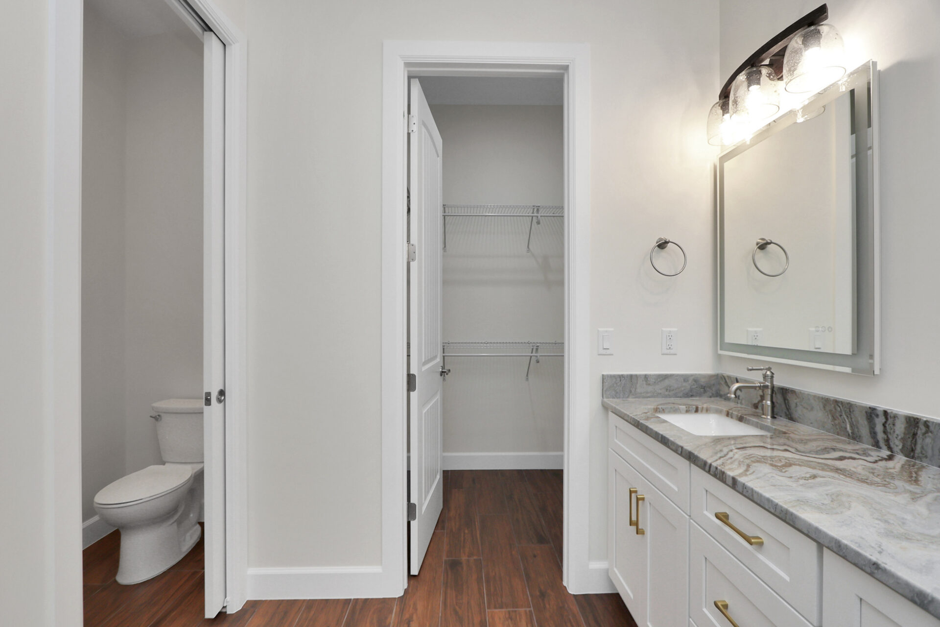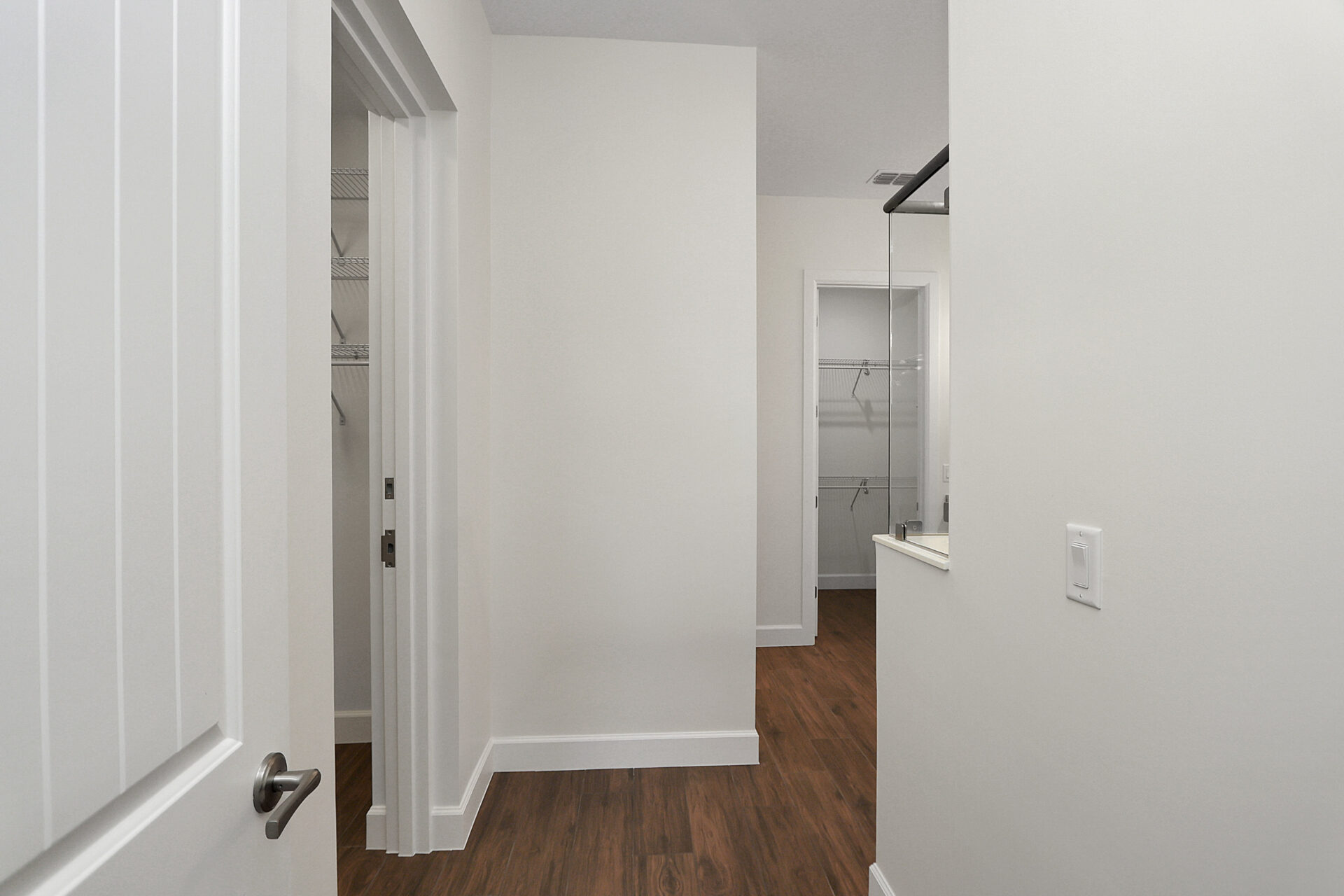 Notably, the first of these closets doubles as a reinforced safe room. Specifically engineered to provide protection during tornadoes, storms, or hurricanes, this space includes integrated ventilation to ensure a constant supply of fresh air. This thoughtful addition provides homeowners with peace of mind without sacrificing the suite’s high-end organization.