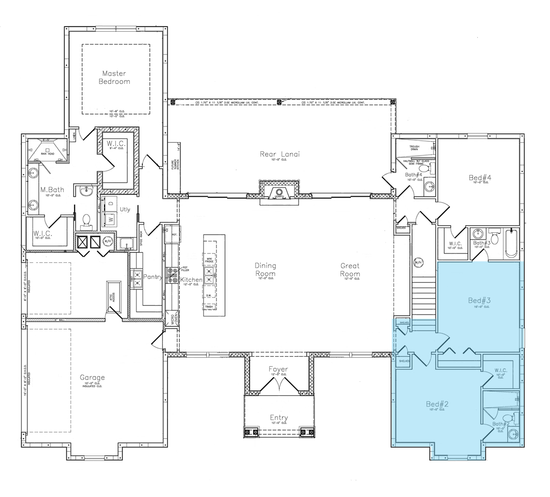 On the opposite side of the great room, a second hallway caters to both guests and functional needs. Bedroom #4 is situated here, offering a generous walk-in closet and easy access to the fourth full bathroom.